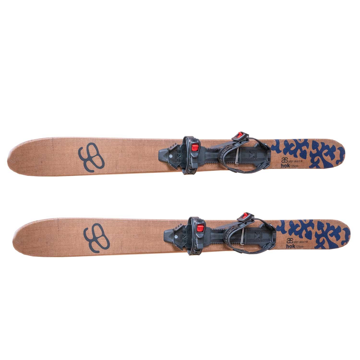 The Hok is designed as an easy to use ski for the backcountry. Its short wide dimensions makes the ski incredibly maneuverable, and the integrated synthetic climbing skin and steel edges give Hok great traction for climbing. Sustainable paulownia wood core reinforced with a combination of natural fibers and fiberglass. Univeral fit bindings will provide the most stable fit when used with backcountry hiking boots. The 145cm size has a little more "ski" DNA in it and works better for those looking to use the Hoks in a more downhill fashion. They also have a bit more floatation for deep snow and BIG skiers. The 125cm is better as a snowshoe substitute, more maneuverable, better in thick woods and brush, lighter, and has a little better grip.