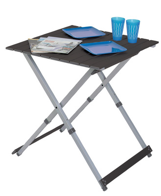 This new twist on camp tables allows this table to fold to 1/2 the size of other camp tables. Designed with telescoping legs - just pull down legs for use; push up legs for storage. When legs are extended, the full-size table is a great table for two or as a side table. Lightweight, aluminum frame supports up to 60 lbs. (27.2 kg). Folds up quickly and easily with its patent-pending Squeeze Telescoping Technology™. Just fold the table top down, then squeeze the table tops together to compress legs buttons and push up on the legs to close legs for storage. Ideal for camping, RV'ing, tailgating, fishing and sporting events.