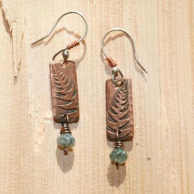 Constructed from a mold of an actual fern. 4x6mm wire wrapped moss agate. Size and color will vary. 2" including ear wires. On torch-balled sterling silver wires.