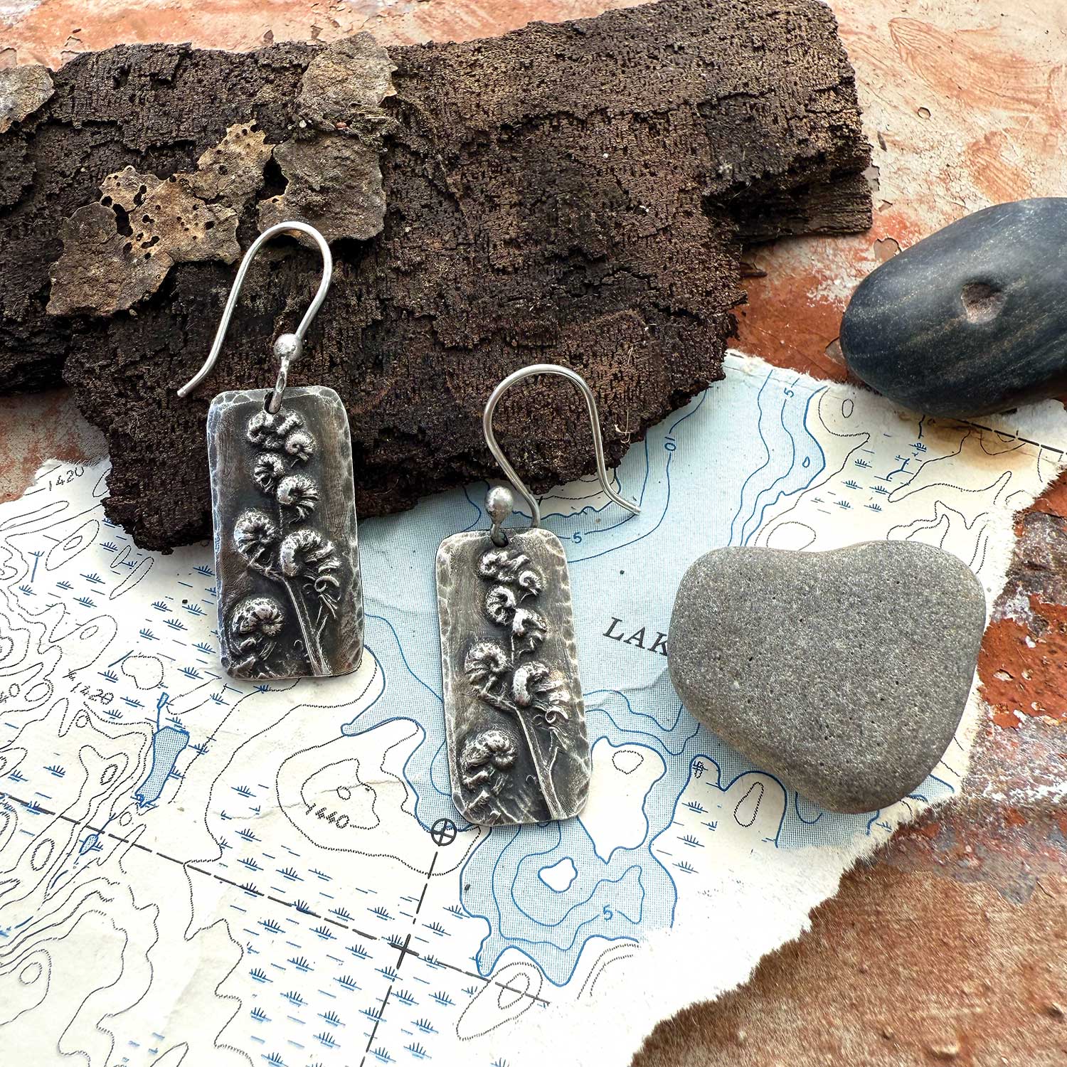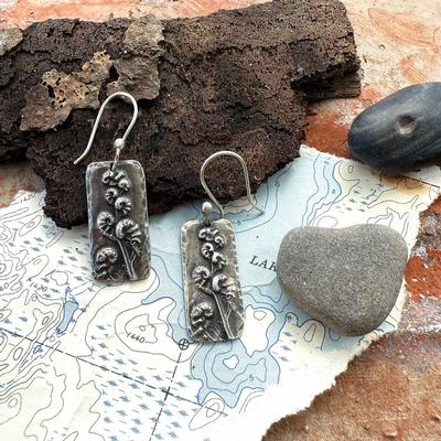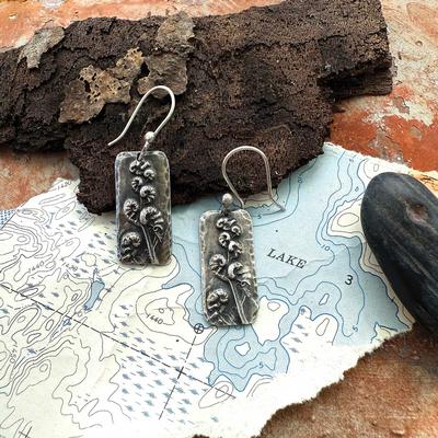 These handcrafted earrings capture the graceful curve of an unfolding fern, a symbol of growth and new beginnings. Created from silver precious metal clay, each earrring is molded from a real fern and kiln-fired to preserve its delicate texture. 1 1/2 inches on sterling silver wires.