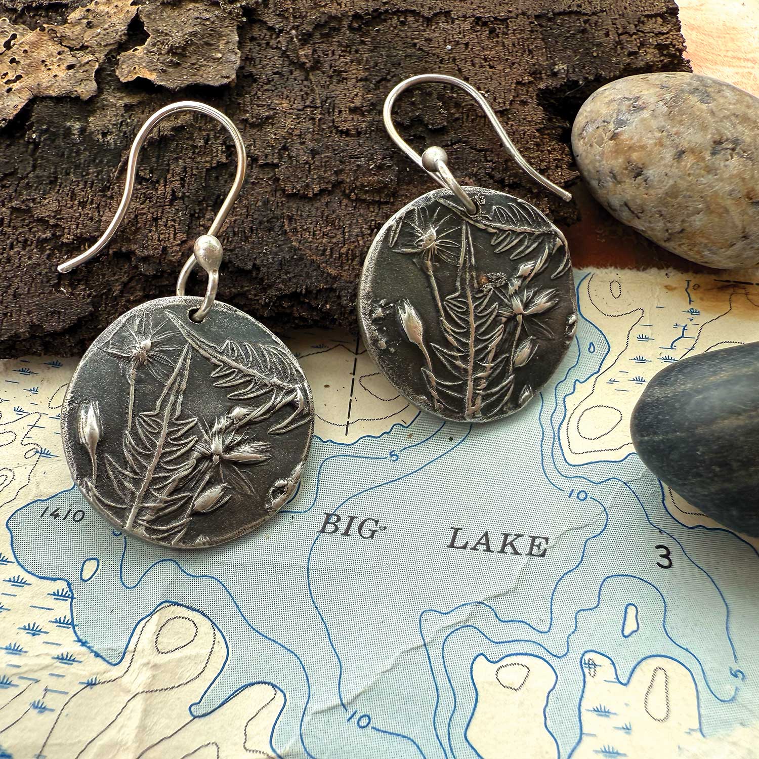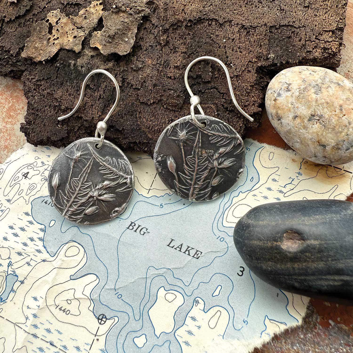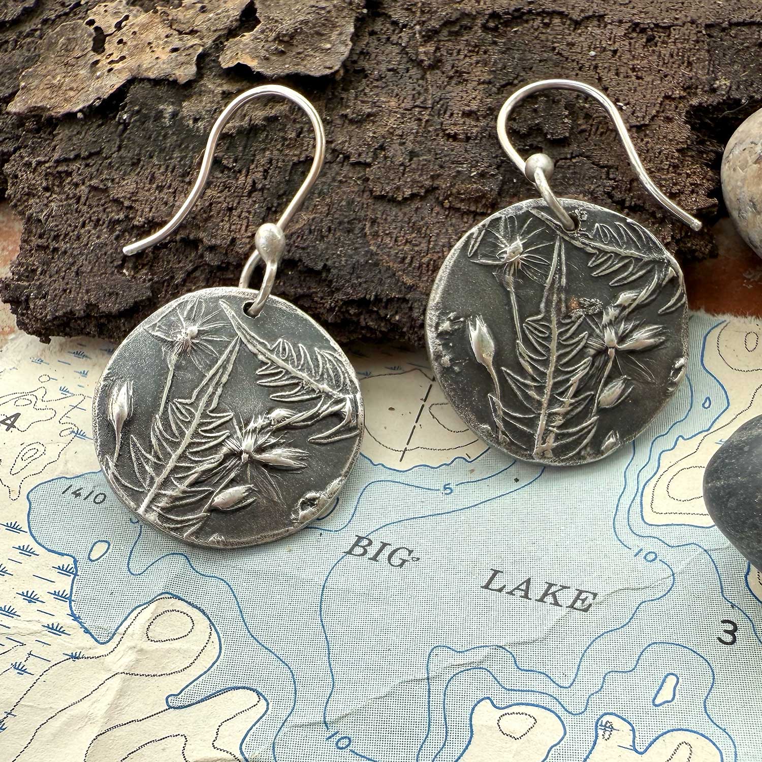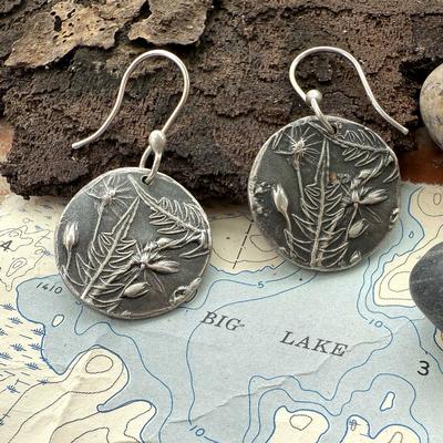 symbol of growth and new beginnings. Created from silver precious metal clay, each earring is molded from a real fern and kiln-fired to preserve its delicate texture. 1 1/2” on sterling silver ear wires.