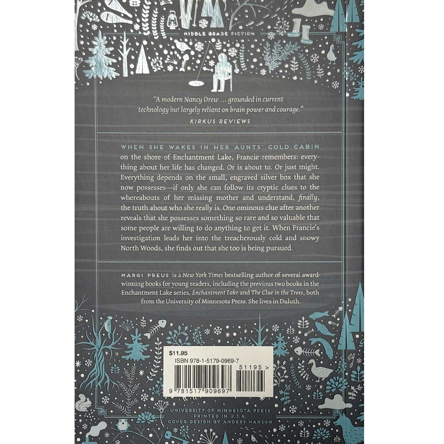 When she wakes up in her aunts’ cold cabin on the shore of Enchantment Lake, Francie remembers: everything about her life has changed. Or is about to. Or just might. Everything depends on the small, engraved silver box that she now possesses—if only she can follow its cryptic clues to the whereabouts of her missing mother and understand, finally, the truth about who she really is. One ominous clue after another reveals that she possesses something so rare and so valuable that some people are willing to do anything to get it. When Francie’s investigation leads her into the treacherously cold and snowy North Woods, she finds out that she too is being pursued.