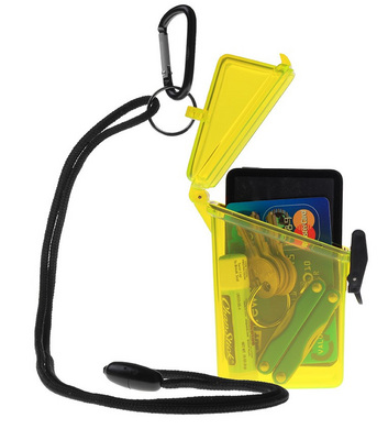 An ideal way to protect your most personal information. The Keep It Clear is perfect for storing credit cards, ID’s, cash and some bigger items like Chap Stick, Lotion or Sunscreen. Not only is the Witz Keep It Clear lightweight and compact, it’s translucent making your valuables easy to find whenever you need them. Features: -- Dimensions 2.7” wide x 4.3” high x 1.3” thick -- Function Secure waterproof container for several small items -- Translucent color -- Nylon lanyard with breakaway clip and carabiner -- Patented angle design -- Crush resistant shell